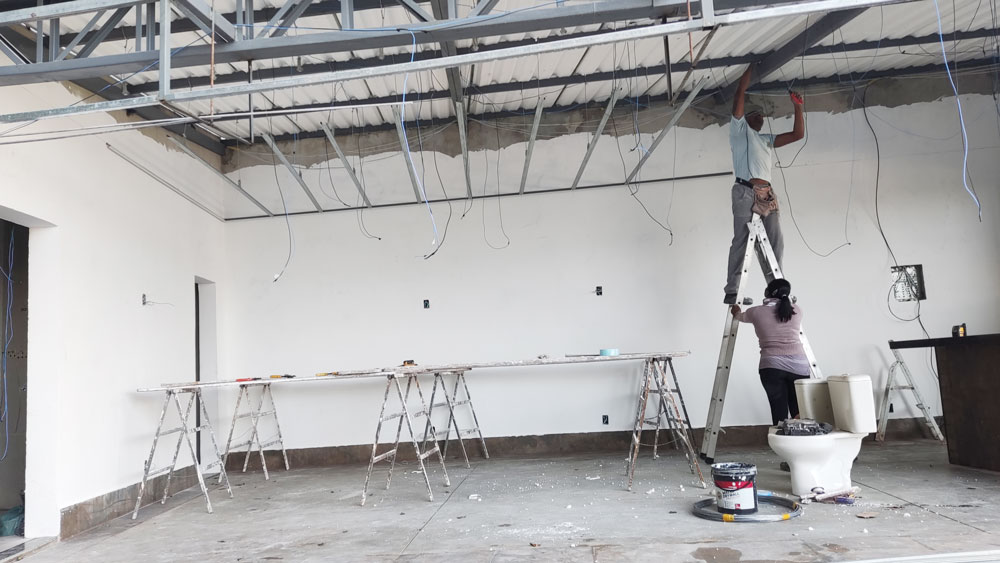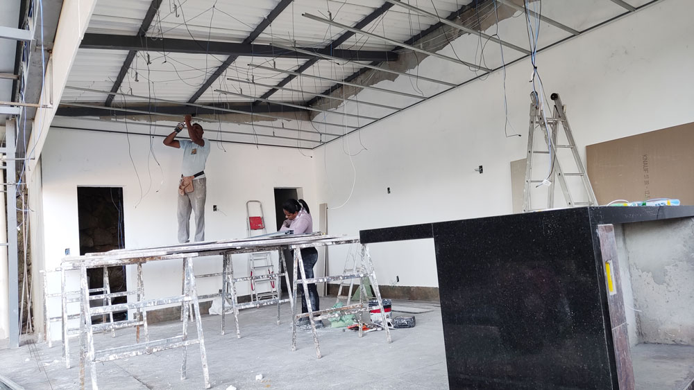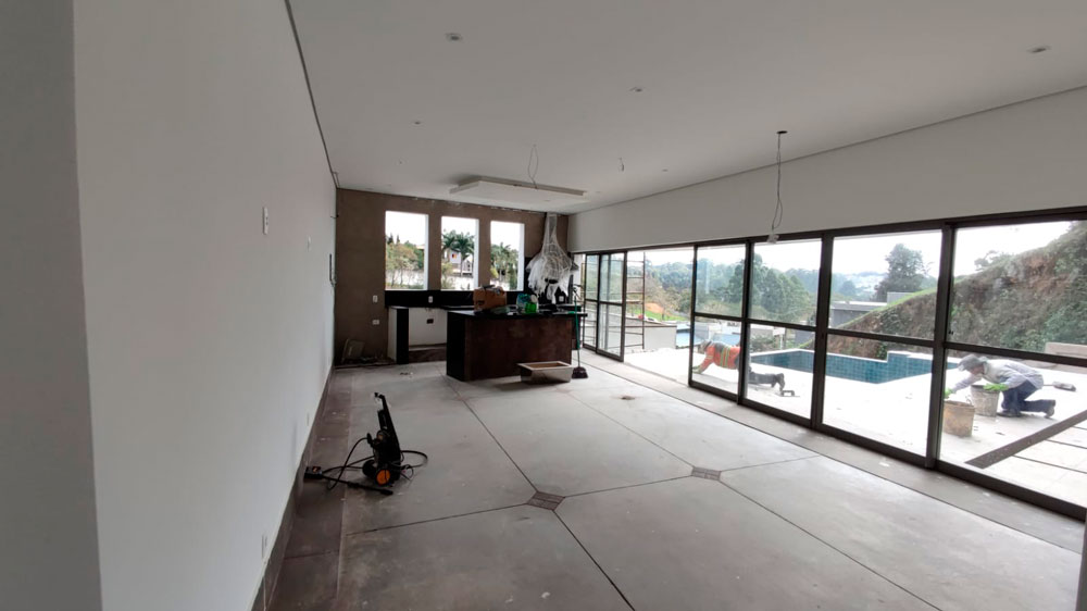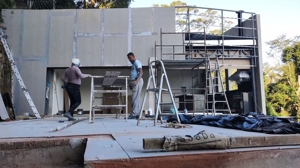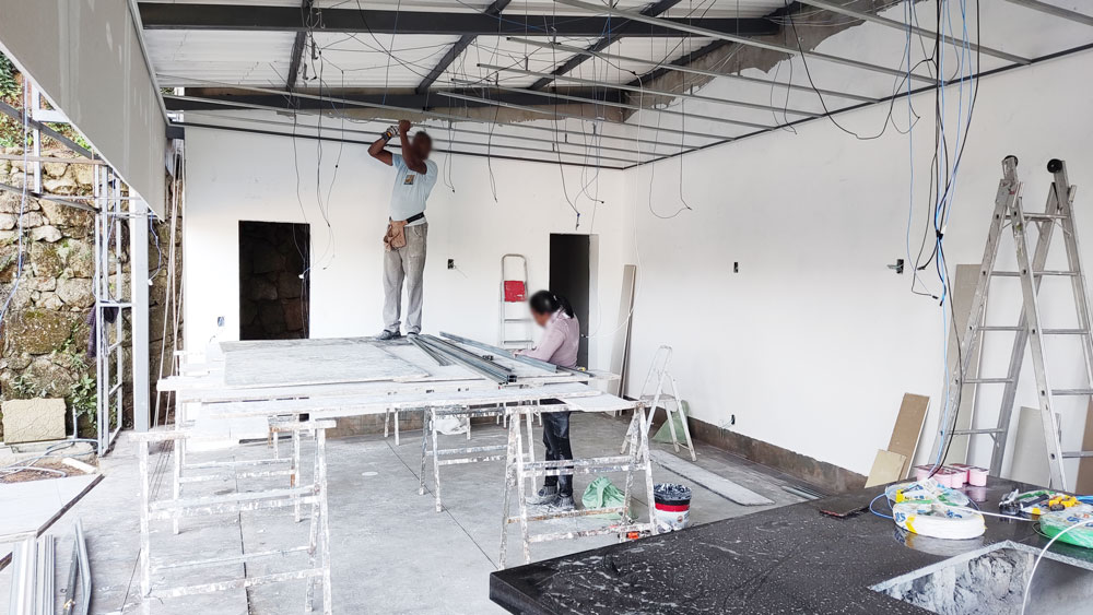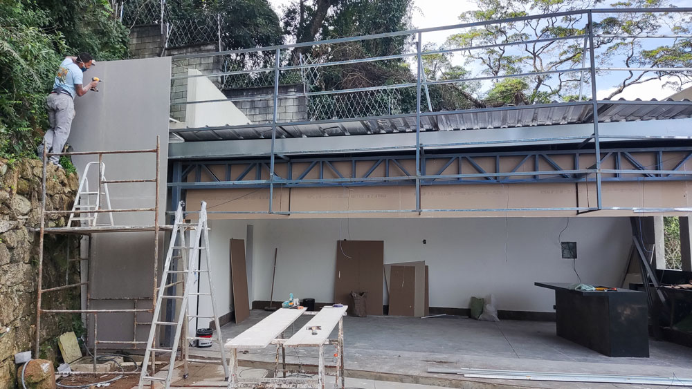 Foi Realizado toda a aplicação de Gesso, Drywall, Placas Cimenticias da Fachada, Elétrica e Pintura